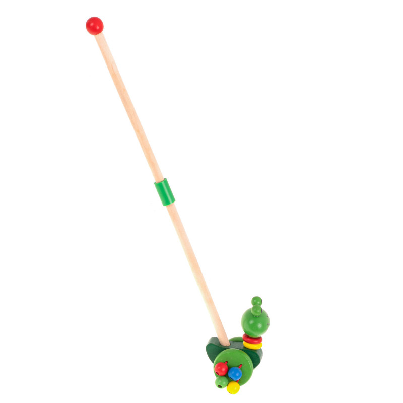 Tlačení na tyči – dřevěná žába je ideální hračkou pro děti, které se učí chodit. Přátelská žabka se stane zábavným společníkem na každé procházce a podpoří rozvoj motorických dovedností Vašeho dítěte.