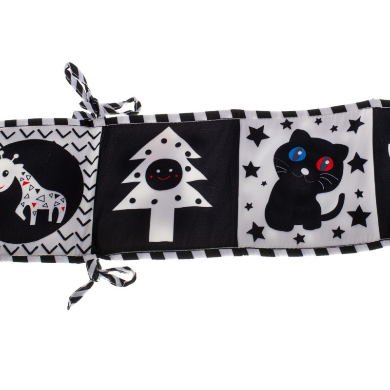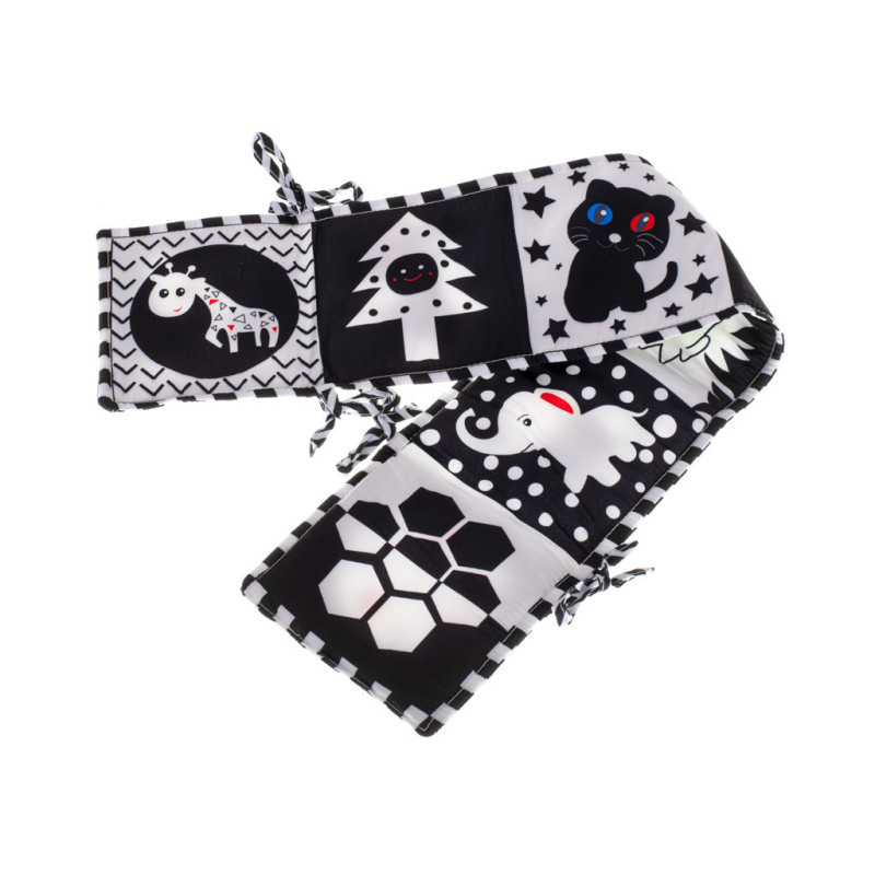 První čtení pro vaše děťátko! Vydejte se spolu na kouzelnou cestu světem tvarů a kontrastních vzorů. Látková brožura ve tvaru harmoniky je ideální nejen na hraní, ale i jako ochranná podložka do postýlky.