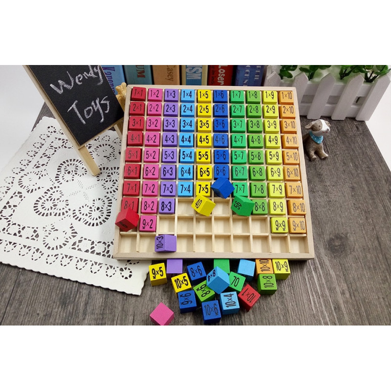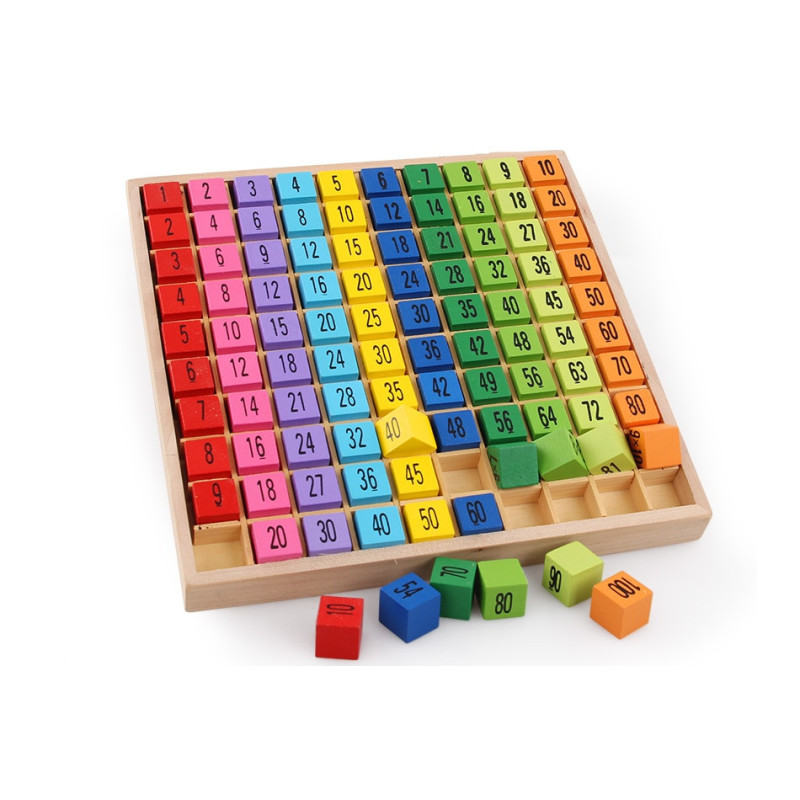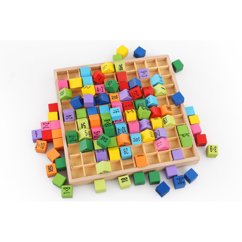Výuková sada pro výuku násobilky je ideální pomůckou pro zábavné osvojení základů matematiky. Barevná dřevěná tabulka s 100 kostkami spojuje hru a učení v jednom. Na jedné straně kostek najdete příklady násobení, na druhé jejich správné výsledky. Díky tomu se dítě přirozeně učí násobilku až do 100.