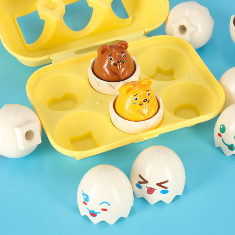 Objevte radost ze hry s vajíčky, která učí i baví zároveň! Naše vzdělávací skládanka – třídicí vajíčka – je jedinečná edukační hračka, která podporuje rozvoj kognitivních schopností dítěte již od 18 měsíců. Barevné balení obsahuje sadu vajíček, která je třeba spojovat do dvojic podle barvy, tvaru a vzoru na spodní straně. A to není vše – uvnitř každého vajíčka čeká roztomilé zvířátko, které hru ještě více zpestří!