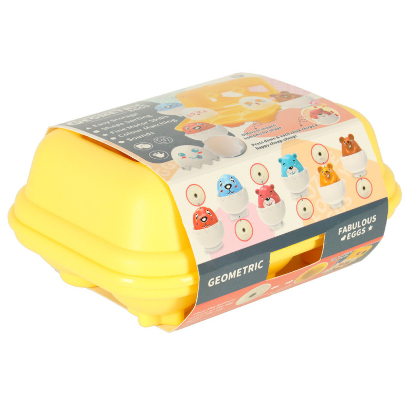 Hra s těmito vajíčky je skutečným třídičem tvarů, který dětem pomáhá učit se hrou. Dítě se učí rozlišovat tvary, barvy a logicky přemýšlet, co kam patří – skutečně tvořivé učení bez nudy!