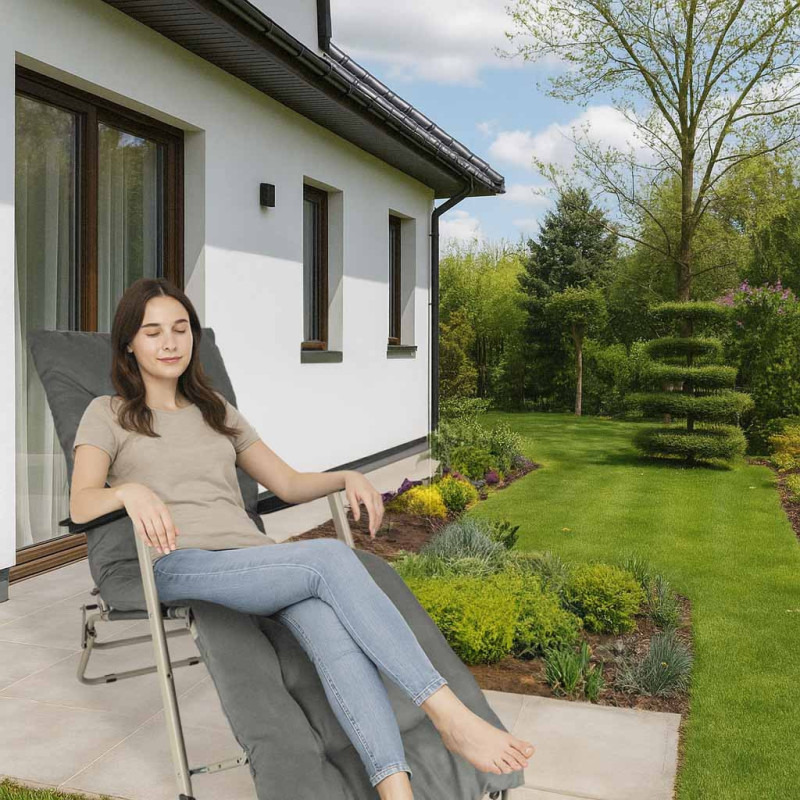 Záhradné lehátko LUARO turistické skladacie kreslo s vankúšom- sivé.