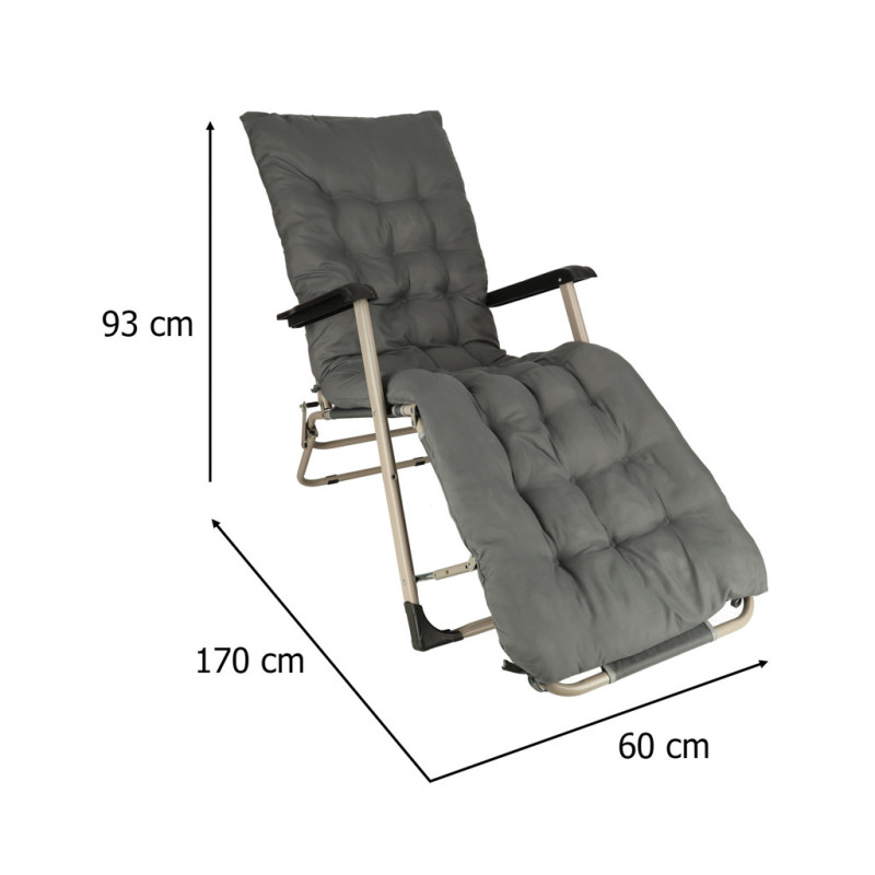 Záhradné lehátko LUARO turistické skladacie kreslo s vankúšom- sivé