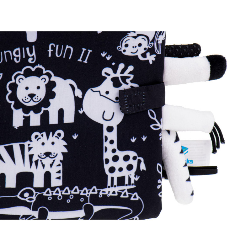 Kniha je vyrobena s důrazem na bezpečnost a potřeby nejmenších dětí. Díky měkkému provedení se s ní miminko může mazlit, hrát si a rozvíjet smysly již od prvních týdnů života.