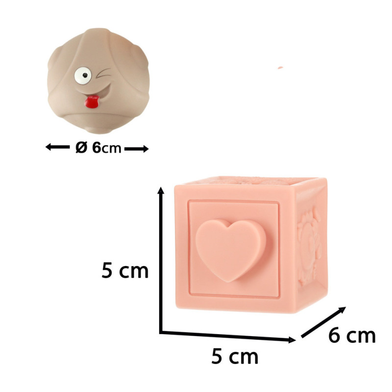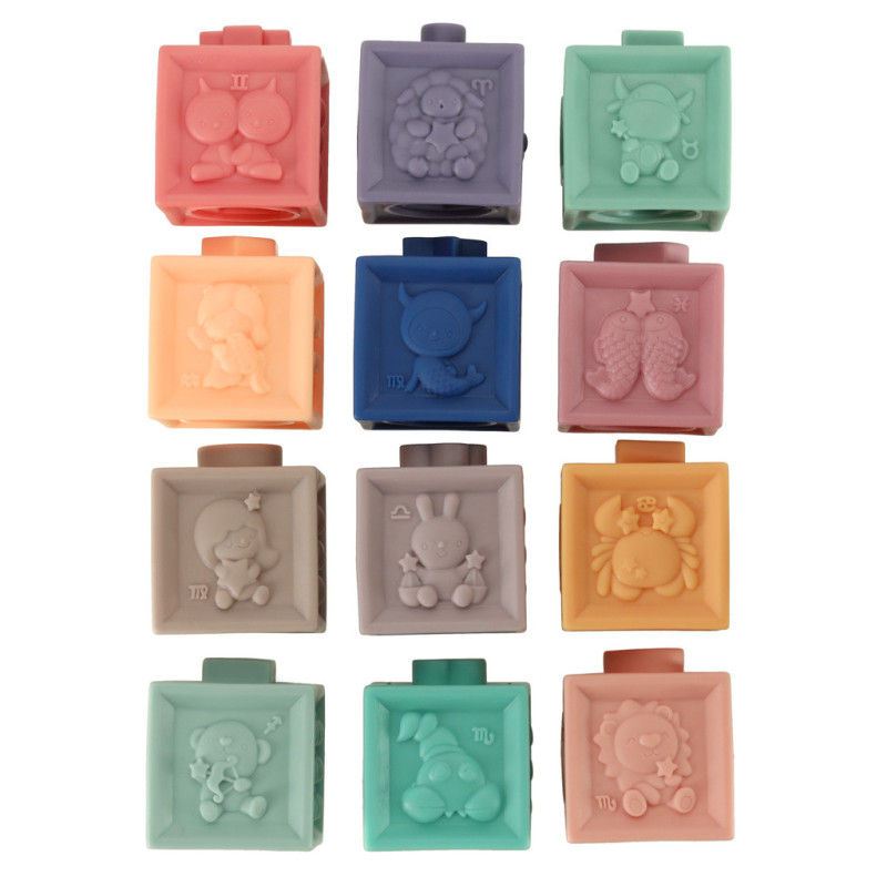 Všechny prvky jsou vyrobeny z měkkého silikonu a mají různé povrchové struktury, což z nich dělá ideální hračky i pro období růstu zoubků – poslouží jako bezpečné a příjemné kousátko.